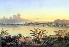 No sexto segmento, Redescobrir o Rio de Janeiro, encontramos a parte mais problemática da exposição, na qual tentativas de descoberta e redescoberta são aplicadas com insistência à imagens da cidade que em dois trechos do catálogo é apontada como, "...depois de Paris, a cidade mais retratada no século XIX". Pois creio que é bem possível que o Rio de Janeiro tenha sido muito mais representado, em pinturas, desenhos e gravuras do oitocentos, do que a capital francesa, e isso em menos de cem anos. Basta considerar o quinto segmento da própria exposição, que da cidade introduz tantas vistas cuja existência até então desconhecíamos por estarem desde talvez há um século ... em Paris. Isso é sugestivo, pois bem raras são as vistas de Paris que existem ou existiram no Rio de Janeiro; mas tais hipóteses não são realmente importantes, a não ser pelo fato de sublinharem a imensa responsabilidade de selecionar obras e escrever sobre o assunto, campo privilegiado que foi da atenção de estudiosos do porte de Francisco Marques dos Santos e Gilberto Ferrez, e de outros tantos igualmente ilustres antes deles. Uma paupérrima seleção [5] de obras motiva um texto que oscila entre pura literatura e a artificialidade de conceitos e apreciações totalmente dissociadas das obras de arte a que se referem. As mesmas características presentes nos segmentos três e quatro repetem-se e radicalizam-se ao extremo nesse segmento. Há formulações ao mesmo tempo equivocadas e fantasiosas, como por exemplo: "Convencional e eminentemente burguesa, a pintura desses viajantes oitocentistas vivia da tentação, irrealizável, de maestria da visualidade e da própria experiência do olhar. Não estamos apenas diante de regras pictóricas, mas também de uma série de convenções sensíveis, que transformava o mundo num repertório de sentimentos, experiências e sensações, capazes de apaziguar a vivência erótica desse pulsão". E também trechos no mínimo dignos de redações escolares: em relação "...aos artistas viajantes que chegam ao Rio em meados do século XIX" afirma-se que "...aqui os artistas mais avançados precisavam trabalhar nos limites estreitos de uma Academia recém-criada, cuja fundação, paradoxalmente, não contava com qualquer sorte de fundamento." A análise de algumas das pinturas é atroz e submete-as impiedosamente a um leito de Procusto intelectual, como em relação a obras de Debret, do "...artista acadêmico Augusto Rodrigues Duarte" e de Henri Nicolas Vinet. Sobre este parece existir a mais absoluta certeza de que tenha sido aluno de Jean-Baptiste Camille Corot, não obstante disso não exista em nossa história da arte qualquer evidência documental: e o pobre Vinet, que viveu no Brasil durante vinte anos até sua morte, e cuja produção é para nós de enorme significado, em quatro parágrafos é tratado como se nada mais tivesse sido do que um mero satélite do grande paisagista francês. E isso através de bizarras impropriedades, tais como a de afirmar que de Corot teria herdado a "...maneira de definir um espaço pictórico unitário através da constituição de um primeiro plano árido e vazio". O sétimo segmento, O panorama no Brasil, sob a curadoria de Anna Maria Monteiro de Carvalho, em 47 obras selecionadas e um texto seguro e ponderado examina — com interesse, isenção e propriedade — a gênese e as peculiaridades da pintura de panoramas em nossa arte do período. Novamente o visitante, caso consiga superar a opressiva hostilidade que emana da confusa concepção do conjunto da mostra e de sua montagem, poderá ver e rever excelentes pinturas de Henry Chamberlain (1796-1844), August Müller (1815-circa 1883), Emil Bauch (1823-circa 1890), Nicolau Facchinetti e, especialmente, os estudos para o célebre panorama do Rio de Janeiro de Vítor Meireles de Lima (1832-1803); além de litografias e gravuras de Johann Jacob Steinmann (1800-1844), Karl Robert von Planitz (1806-1847), Guilherme Briggs (1813-1870) e outros. Esse segmento compartilha com o segundo qualidades e méritos essenciais na abordagem dos temas que se propõe analisar, como já foi dito, seja na seleção das obras como na objetiva e esclarecedora relação que esta mantém com o texto publicado no catálogo. Resta falar de Os artistas viajantes, a paisagem e representações do Brasil, o segundo texto especial contido no catálogo. Suponho que a autora, Ms. Dawn Ades, seja inglesa, isso pela prolífica citação de autores e artistas britânicos, das pitorescas teorias de William Gilpin [6] às pinturas e opiniões amadoras do diplomata William Gore Ouseley (1797-1866), sem esquecer Lady Calcott, nossa conhecida Maria Graham, que pela primeira vez vejo mencionada como fonte séria de reflexão para assuntos específicos de arte e pintura no Brasil. A inclusão desse texto — que segundo a lógica particular da exposição possuiria o mesmo estatuto do ensaio de Jorge Coli, ambos externos às responsabilidades de curadoria — é muitíssimo embaraçosa. Qual a razão de recorrer a um autor estrangeiro, que por suas palavras demonstra inequívoca escassez de contato direto com o tema brasileiro que escolheu ou lhe foi atribuído? Fortes motivos para isso seriam indispensáveis, notadamente quando — salvo traições da tradução — o que se obteve limita-se a divagações genéricas e inconclusivas. Ms. Ades adeja por terrenos tão vagos e brumosos quanto a atmosfera londrina, referindo-se com insistência ao conceito filosófico do "sublime", tão caro ao paisagismo norte-americano de antes da Guerra Civil e tão distante de nossa realidade católica e tropical; mencionando discutíveis categorias instrumentais como a de "paisagem topográfica", engendrada nos porões dos sagazes leiloeiros da Sotheby’s e da Christie’s; produzindo explicações frias, mecânicas e artificiais para o tipo de composição paisagística mais freqüente em Rugendas e Debret, em suas vi